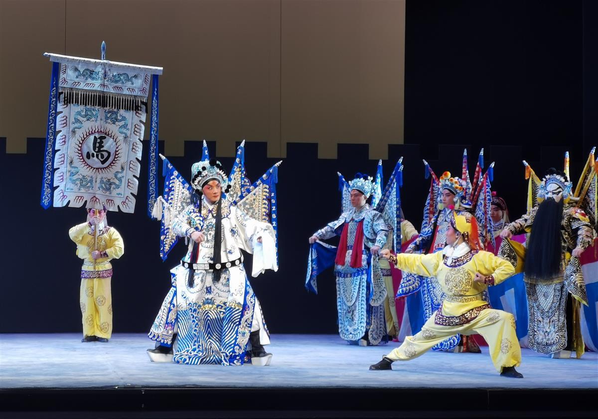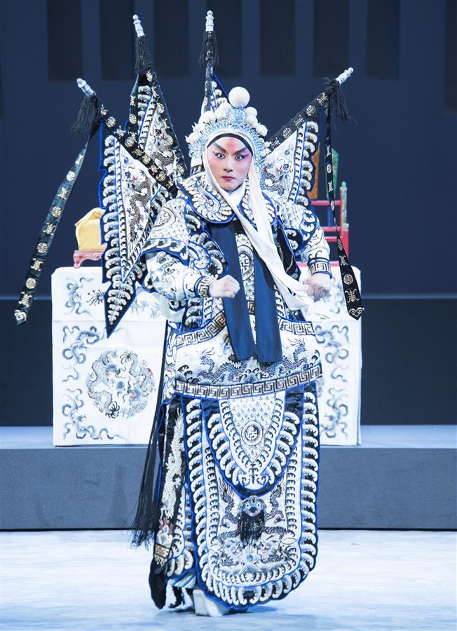 首演现场,舞台上的唐恺以优美、稳重、沉着的功架和腰腿功,将“马超”这一角色演绎得活灵活现。其“云手”“起霸”沉稳大气,举手投足英姿飒爽,尽显骁勇英武的大将之风。在最精彩的“城下三摔”一段中,主人公马超由惊诧气愤到悲痛欲绝,最后元气大伤,唐恺的表演由弱到强、层层递进,戏剧气氛至此达到高潮。整场演出中,他展示了高难度的抛枪、耍枪、转枪、背枪、绕枪,快节奏的涮腰旋转、拧腿翻身等,伴随着唱念做舞,展现出了扎实的艺术功力。