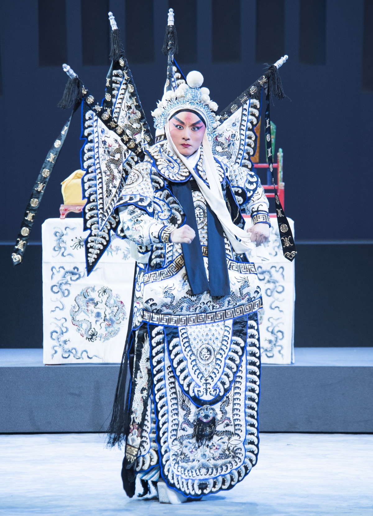 剧中马超由优秀武生演员唐恺饰演,他毕业于第六届中国京剧优秀青年演员研究生班,曾获CCTV第七届青年京剧演员电视大赛金奖。演出中,唐恺以出色的功架和腰腿功将“马超”这一角色立于舞台,从长靠到短打展示了武生的扎实功底,经典的“城下三摔”演绎出惊诧气愤到悲痛欲绝,最后元气大伤的层层递进,高难度的抛枪、耍枪、转枪、背枪、绕枪,快节奏地涮腰旋转、拧腿翻身等动作,精彩纷呈。