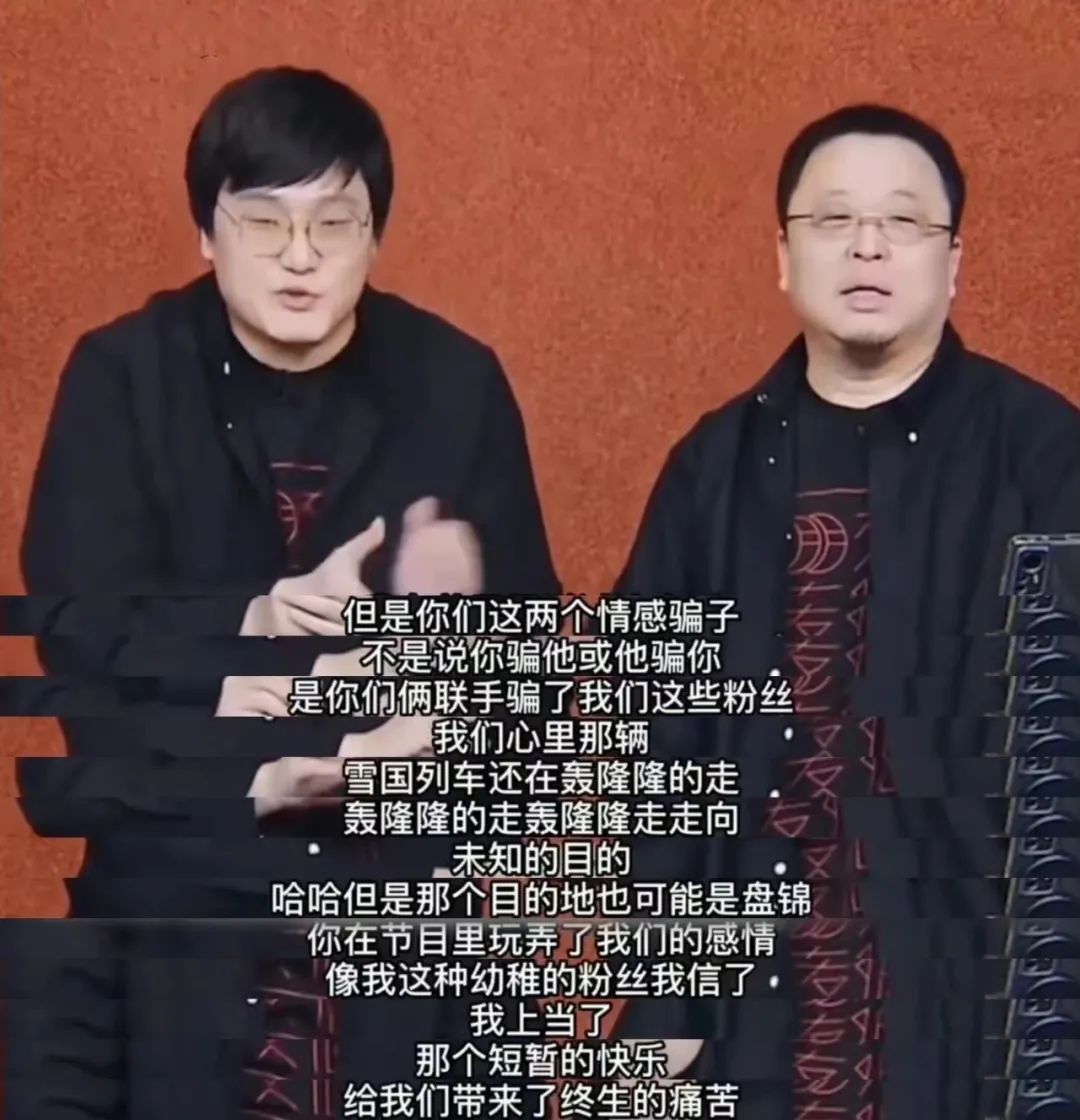 “你们两个情感骗子,联手骗了我们这些粉丝!” “像我这种幼稚的粉丝我信了,我上当了!” “短暂的快乐,给我们带来了终生的痛苦!”