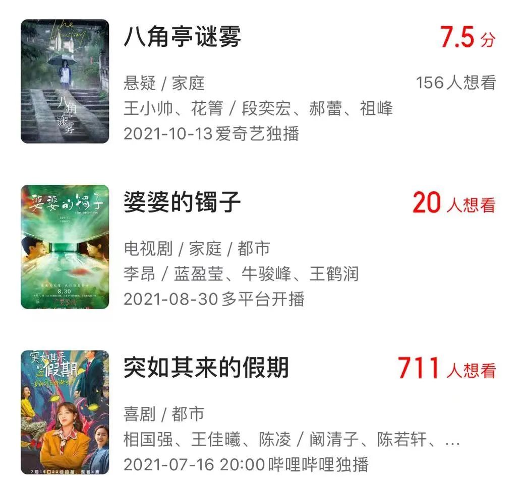 因精品短剧《隐秘的角落》一鸣惊人的万年影业,2021年一口气推出了三部类型不一的精品短剧,想继续夯实这一赛道,可惜全军覆没了。