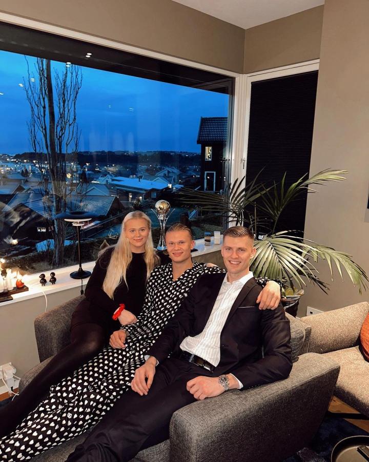 圣诞节期间,哈兰德姐姐晒出她与哈兰德兄弟俩的合照。
