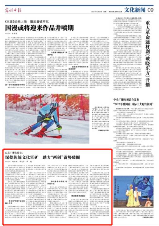 近年来,山东广播电视台在新闻宣传上以传播效果为发力点,不断创新文化报道理念。围绕弘扬中华优秀传统文化,聚焦一系列重大主题和重要时间节点,在新闻策划、报道方面狠下功夫,努力让传承和弘扬中华优秀传统文化形成声势、形成合力。