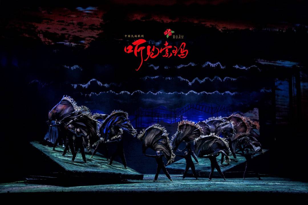 《听见索玛》全剧13幕戏全部用唱段表达,在唱段创作上,刘党庆采取了彝族原生态调式与彝族现代民歌相结合的方式,使之在保留彝族元素的基础上更加朗朗上口。同时,美声结合RAP等演唱形式也能够在引起观众共鸣的同时,达到以情动人的目的。此外,该剧唱段中还运用了大量“叠唱”的形式,“规矩”“觉醒”等极具矛盾冲突的唱词,同一时间从老村长“伍达”和“木且”口中唱出,让整部剧的矛盾冲突一目了然,很好地推动了情节发展。