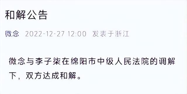 “双方达成和解”,12月27日中午,微念发布了一份与李子柒的和解公告,该话题也迅速登上微信热搜。