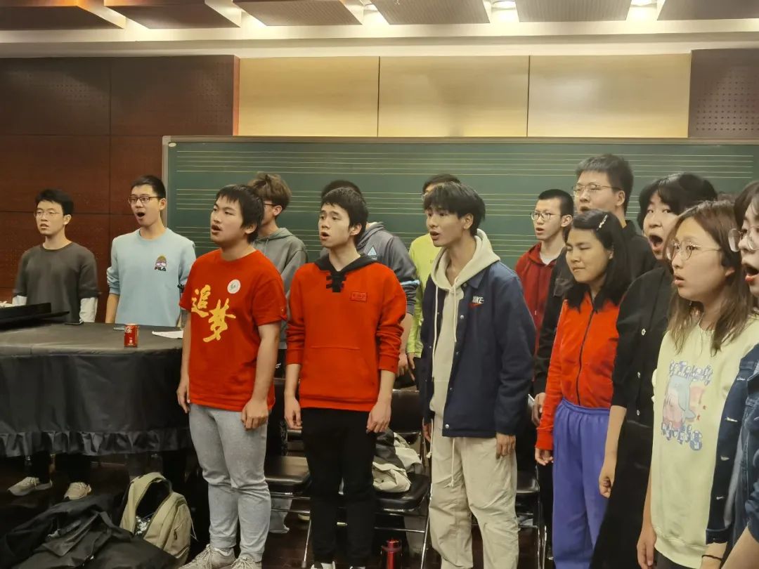 合唱团中的每一位成员都非常珍惜排练时的点点滴滴,他们就像一个个音符,把每一寸时光都编成一首歌。在参加2021年北京高校合唱比赛时,为了能够取得满意的成绩,大家约定好每天去操场上一起晨练,早上八九点的阳光照耀着他们一起跑步和练声的身影,红色的跑道上留下了他们努力练习的汗水,也见证着他们一点一滴的进步。在比赛当天,同学们凌晨三点便从宿舍来到排练厅做准备,大家互相帮助对方做妆发、整理比赛服装,丝毫没有早起的疲惫,心中都有一股冲劲,要在比赛中展现出最好的一面。“比赛那天我们一起看到了早上的日出,一起在舞台上拼搏,当最后一个音符圆满结束,我们每个人都分外激动,我们做到了!”合唱团成员王含羽说道。一次次的排练和比赛中,合唱团的同学们不仅在彼此的陪伴中收获了真挚的友谊,更提升了能力,收获了成长。