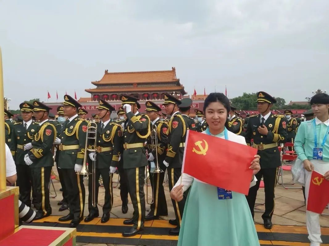 2019年10月1日,82名合唱团学生前往天安门参与庆祝中华人民共和国成立70周年庆祝大会广场合唱;2021年7月1日,75名来自北工大合唱团的同学参加了庆祝中国共产党成立100周年庆祝大会。每一次站在天安门广场上,他们都全体肃立,昂首挺胸,一股蕴藏已久的青春激情,伴随着嘹亮的歌声喷涌而出,绽放在那个庄严、隆重而光荣的时刻。在军乐团的前奏刚刚响起的那一刻,那些埋在记忆里,过往克服种种困难的点点滴滴,为队伍“护航”无怨无悔的队友,心中反复默念的努力拼搏......都化入激昂的歌声里,字字句句皆是青春的誓言。