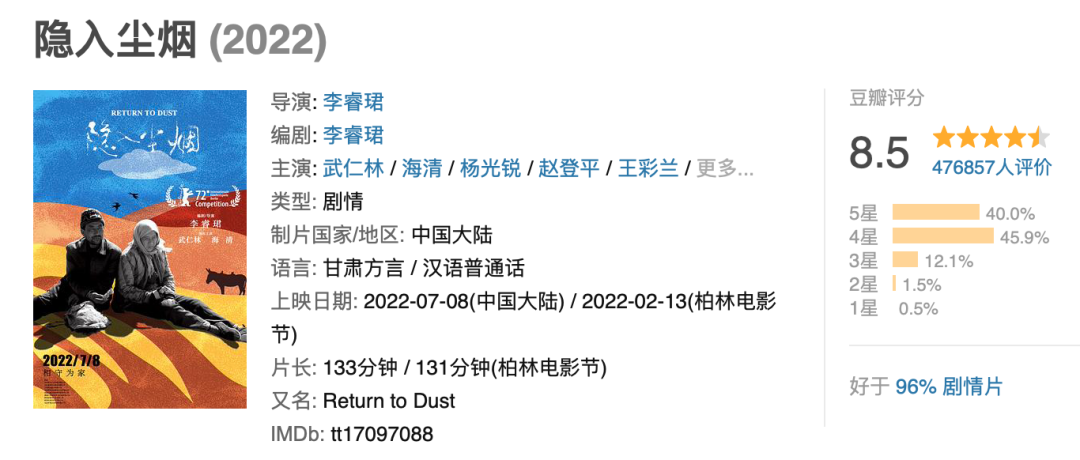 当然,也看到很多网友提到了《隐入尘烟》,因为无论是分数还是看过人数,都应该入选的。
