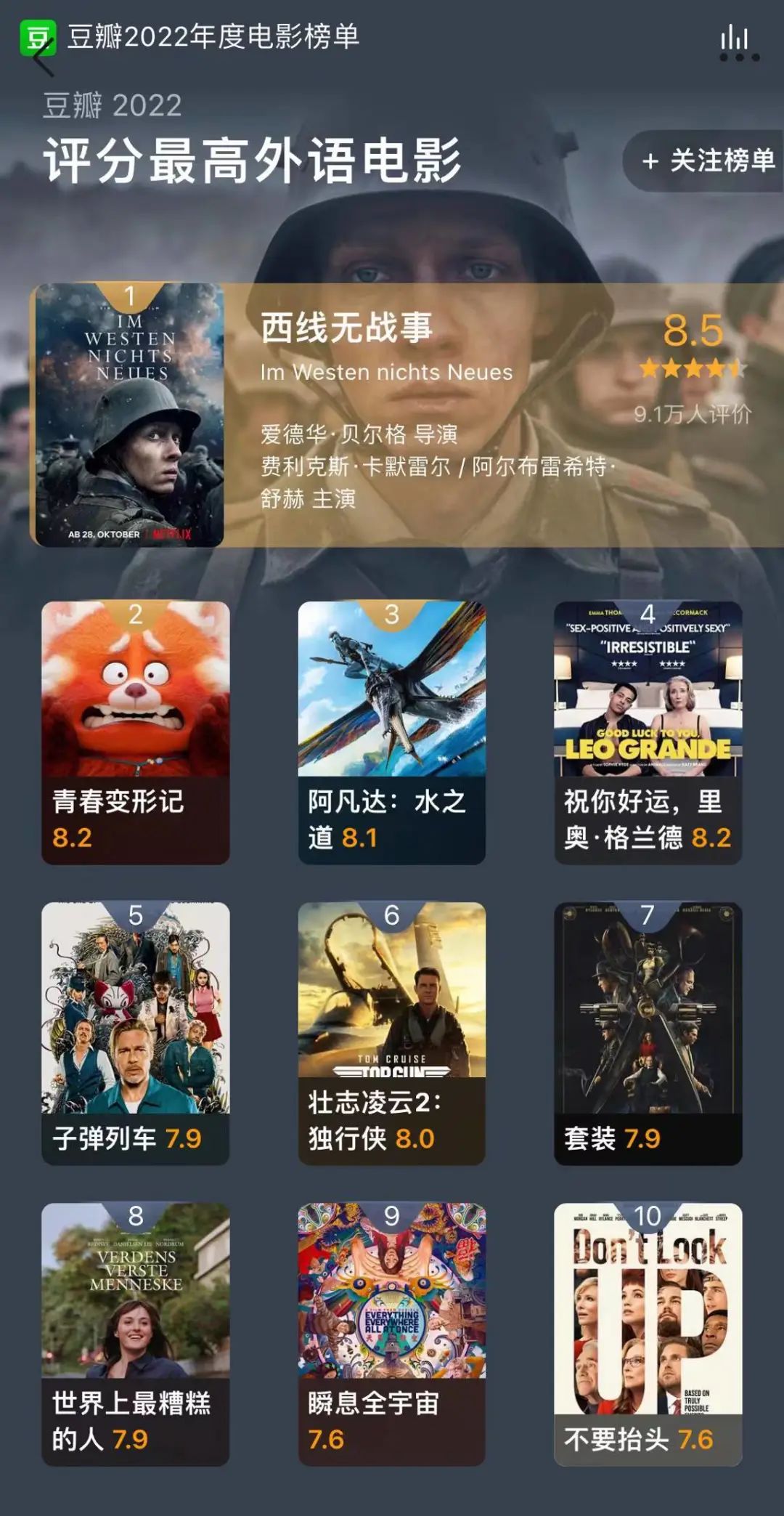 比如,年度外语高分电影Top 10,就,也那么回事吧。