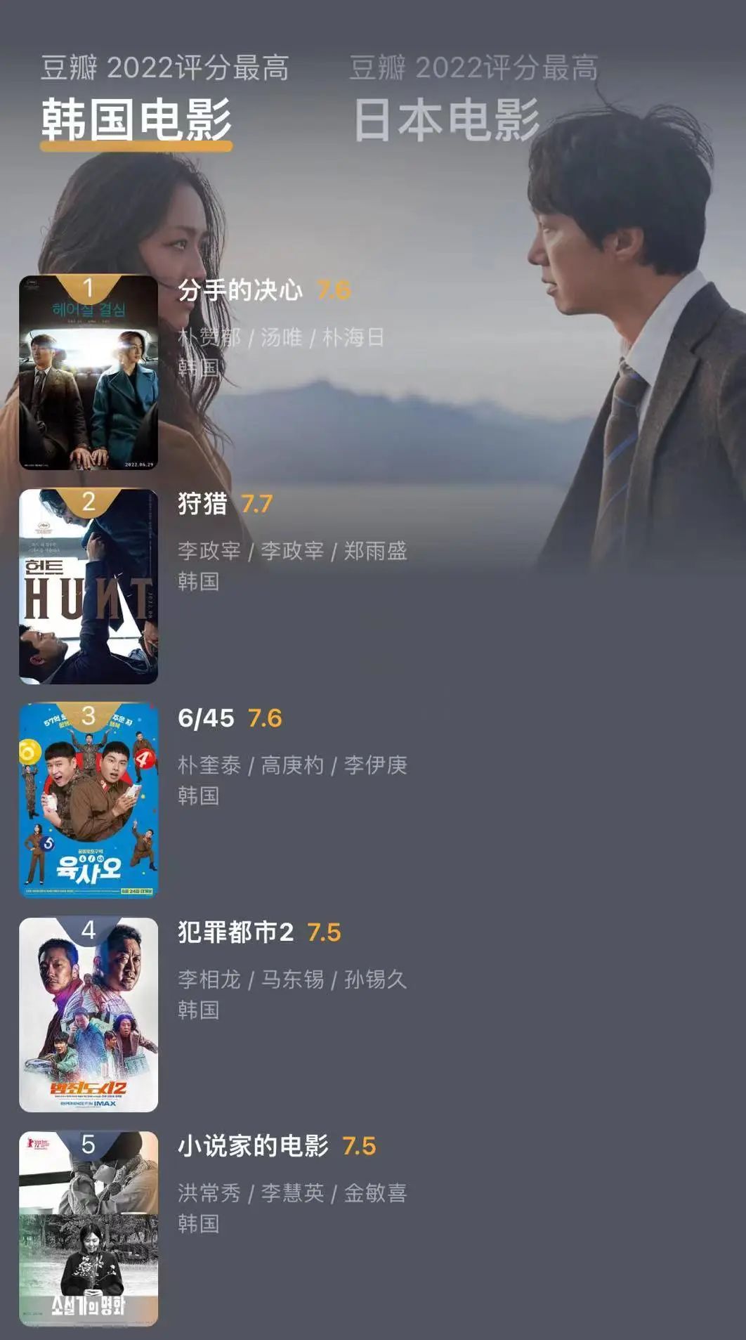 当然,入围的几部电影都还挺不错的。除了《分手的决心》这种年度热门韩片。