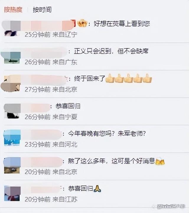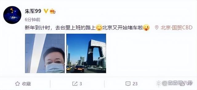 12月29日,著名主持人朱军宣布正式回到央视上班,朱军在社交媒体发文:“新年到(倒)计时,去台里上班的路上,北京又开始堵车啦。”
