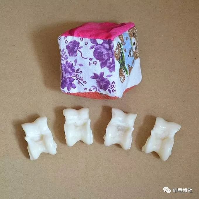 所以,抓羊拐是个技术活,虽然一副羊拐(通常四个)、一个沙包,看似简单,却可以让小姑娘们越玩儿越上瘾。