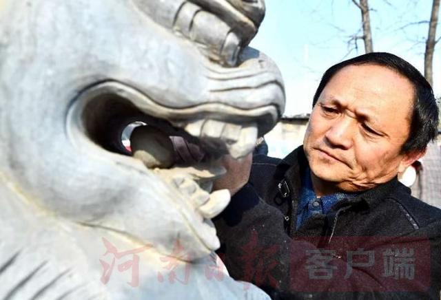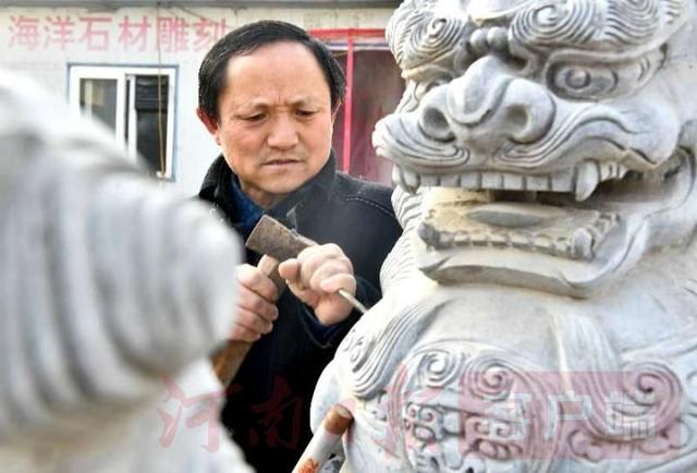 12月21日,商丘市非遗项目王氏石雕传承人王海洋在雕刻石狮子。在石雕生意出力费神不赚钱,艺人不愿干的大环境下,商丘市非遗项目王氏石雕传承人夏邑县海洋石材雕刻厂王海洋守艺几十年,他通过拜访名师、潜心钻研,石雕技艺非常精湛,石雕作品造型逼真、手法圆润细腻、纹式流畅洒脱,碑刻技艺享誉豫东大地,将石雕技艺不断发扬光大。