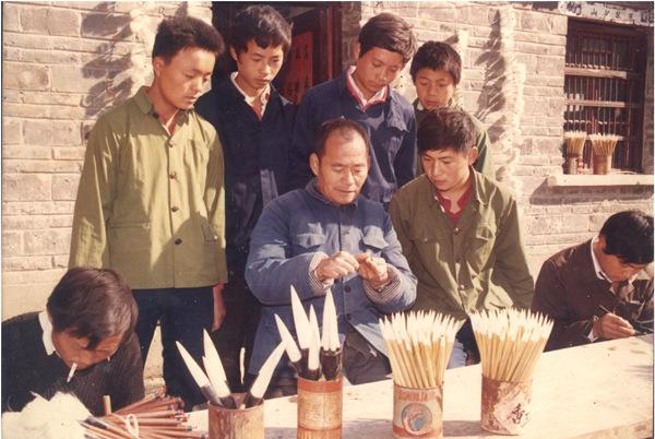 曹如章生于1928年,只读了两年私塾就因贫困辍学。1942年,家里当了二亩地作“压跪礼”(学费),让14岁的曹如章拜在制笔大师李万中先生门下,学得一手精湛的制笔技艺。