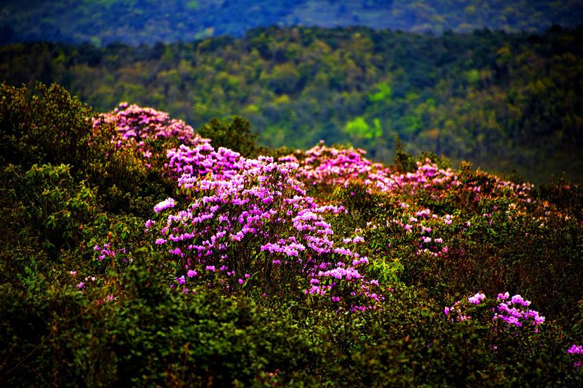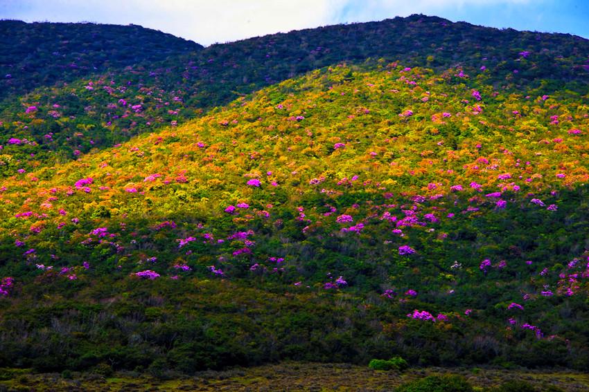 但茂密繁盛的枝条显然阻挡了我想钻入花海的愿望,无奈又想寻找最美的角度去定格这炫目的花容,只好上窜下跳,忽左忽右地往返穿梭才拍下了一组杜鹃的照片,看来爱好摄影也不容易啊。