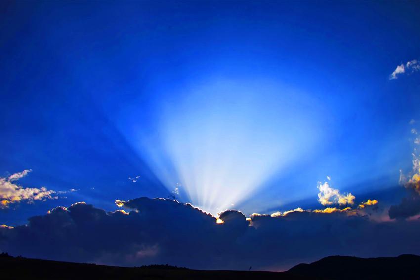 尤为令我兴奋的是夕阳在告别天际的最后一刻,竟然映射一道耀眼而窒息的耶稣光,并被我迅速定格在胶片中,为今天的花甸坝之行,画了一个完满的句号。