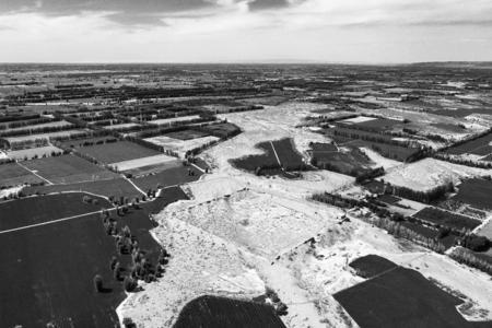 这处古城即黑水国,位于张掖市区向西约10公里的甘州区明永乡境内。从空中俯瞰绿地中两片沙窝,格外醒目,黑水国古城遗址分南北两城,相距约3公里,国道312线从中穿过。