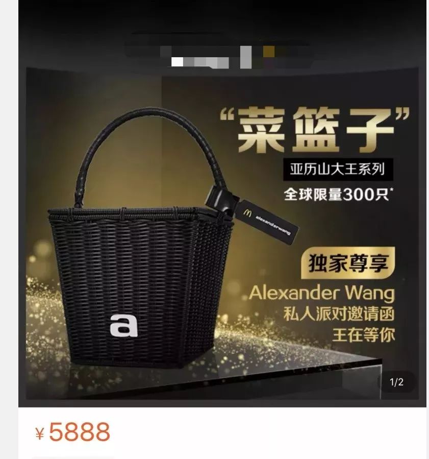 另一款则是叫价5888元的“黑金篮子”,全球限量三百只,还一掷千金,请了许多明星网红来站台。