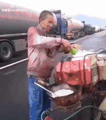 一大家子人,不仅能吃泡面,甚至还能打个火锅。将整条高速当做野餐的舞台,真是有种大地在我脚下的硬核美感。(当然,老艺术家并没有支持的意思。)