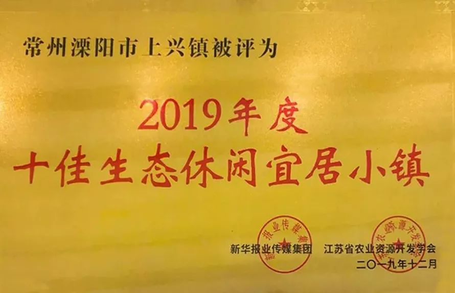 其中溧阳市上兴镇被评为“2019年度十佳生态休闲宜居小镇”。