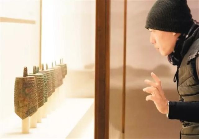 △参观者在国博欣赏刘家洼遗址出土的钮钟
