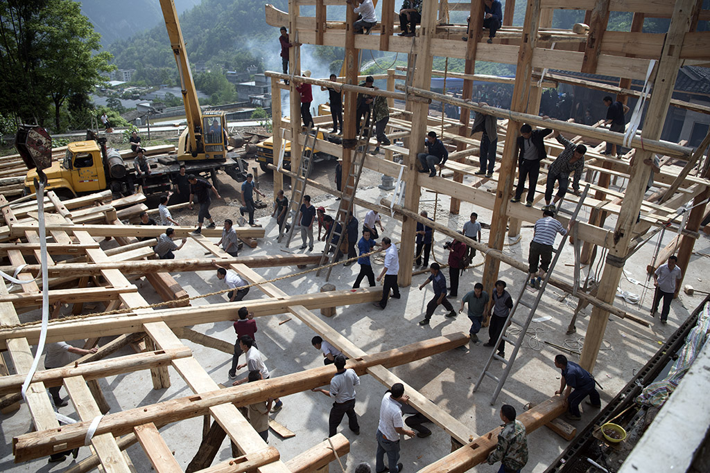 武陵山地区山大林密,林木资源非常丰富,当地百姓就地取材,进山伐木,找一个依山傍水的地方修建房屋,然后就形成了极富特色民居。2109年4月,位于重庆市黔江区中塘乡兴泉村的一户人家,修建了一栋吊脚楼,我便前往拍摄记录了修建房屋全过程。