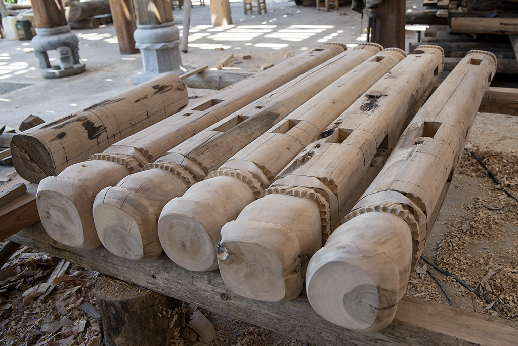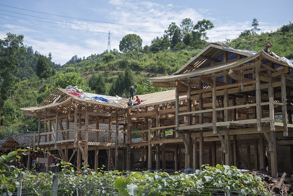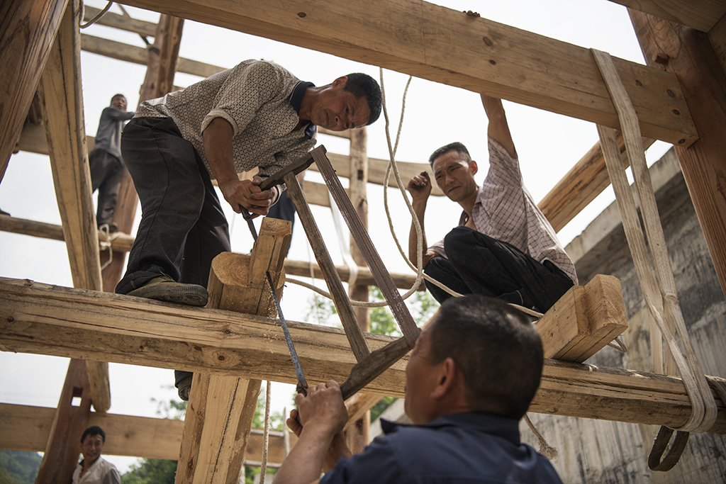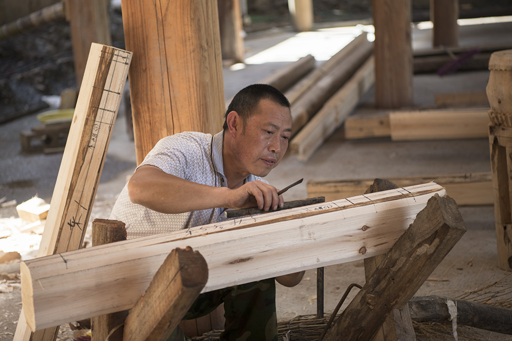 万事俱备后,主人家请来木匠,在掌墨师的带领下正式开工,首先对准备好的木料根据其长短、大小、弯直逐一进行加工制作。让人称奇的是:修建房屋时没有图纸,掌墨师对各个部件的样式、尺寸以及整栋房屋的结构了然于胸,在修造过程中很少出现差错。