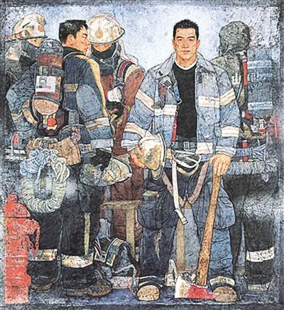 除了国画《使命》,获奖作品中还有一件聚焦消防队员形象,这就是雕塑《烈焰青春》。中国美协理论委员会主任尚辉评价说:“从这两件作品中,我们可以看到一个共同的特点,消防队员表现的是青年人的形象,他们的使命、朝气以及内在所散发出来的时代气息都特别鲜明。”