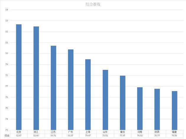 北京、上海、浙江等六省份位列第一方阵,且发展的稳定性很好