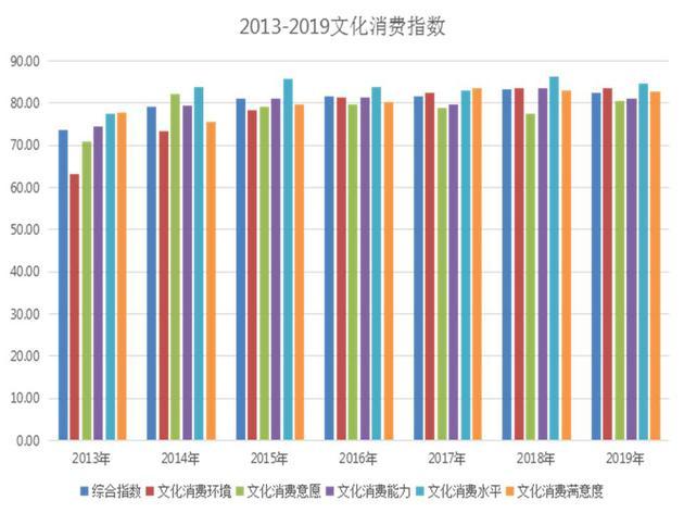 曾繁文介绍,从发布的2019中国文化消费指数来看,我国文化消费综合指数较去年有略微降低,文化消费环境指数逐年上升,近五年文化消费能力停滞不前,今年的文化消费能力指数甚至有了一定程度的下降。