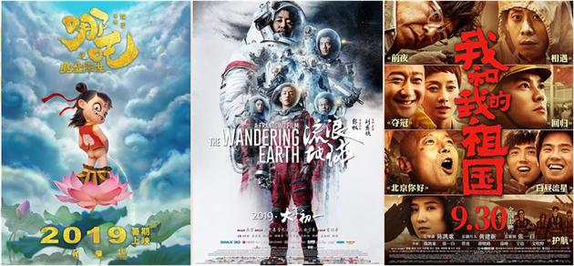从左到右依次为《哪吒》、《流浪地球》以及《我和我的祖国》