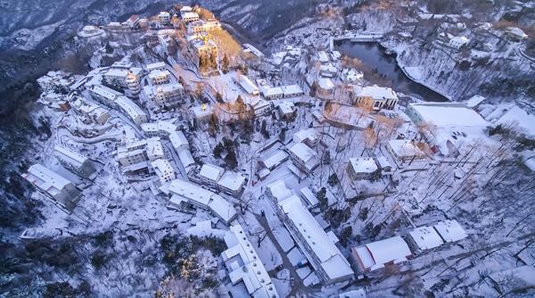 “忽如一夜春风来,千树万树梨花开”,山中一夜之间白雪降临,村落、黄昏、人家、热闹的烟火气息扑面而来,皑皑白雪又增添了几分清冷气息,古韵悠悠,当是一副人间美好画卷。(河南省郑州市经开区纪工委供 王力尧 摄)
