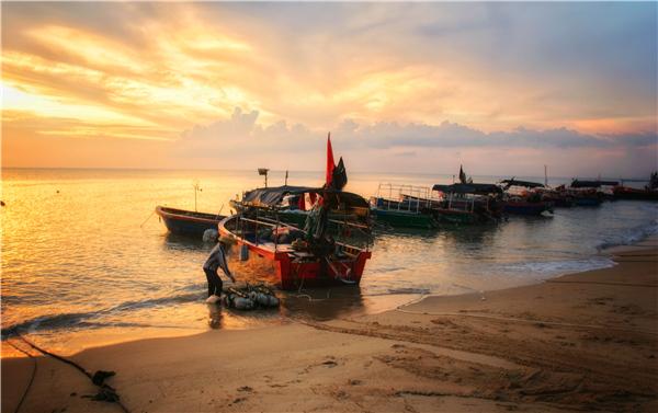 十二月的海南温暖依旧,当夕阳的光芒染红了天际,渔民结束了一天的辛勤劳作满载而归。(海南省乐东黎族自治县纪委监委供 王昌国 摄)