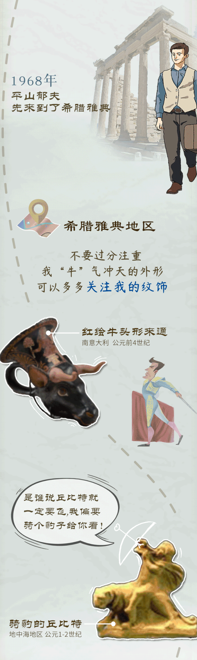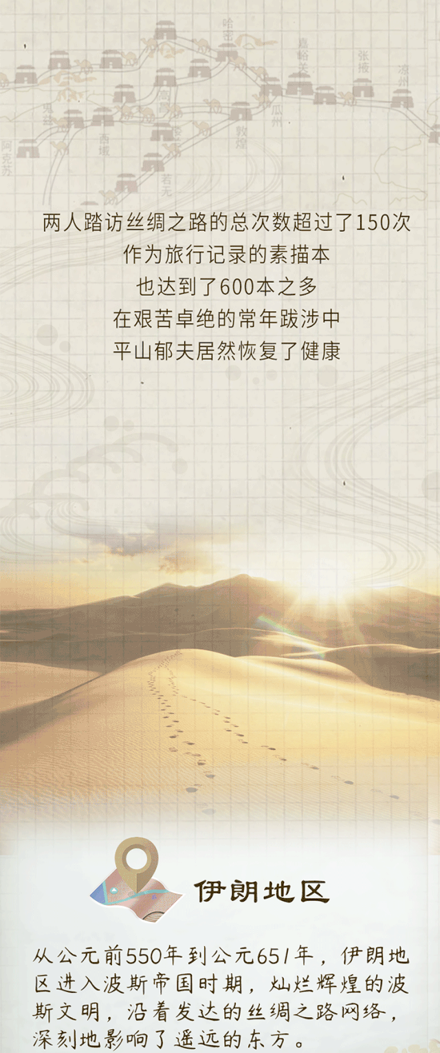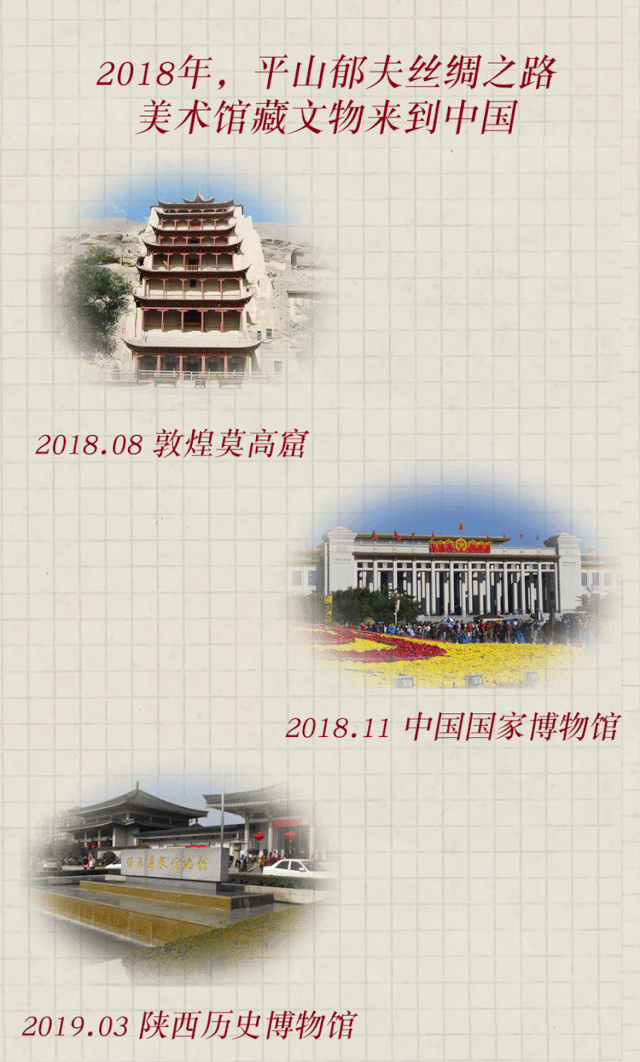 本次展览荟萃了日本艺术家平山郁夫先生收藏的丝绸之路沿线,文明古国的文物珍品,包括环地中海地区、两河流域和伊朗地区以及阿富汗、巴基斯坦和印度地区的丝路艺术,种类方面有希腊彩陶与浮雕、罗马与波斯玻璃器、波斯金银器、丝路金银币、中亚织锦以及印度佛教造像等多种,另外也包括其部分平山郁夫敦煌写生作品,全部来自平山郁夫丝绸之路美术馆,共192件组。