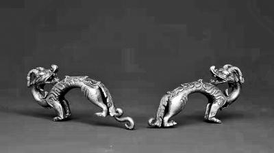 “大概八九厘米长,分别位于外椁棚板上部人骨身下和椁内,造型基本一致。”担任本次发掘项目中方执行领队的周立刚告诉记者。这一对鎏金银龙呈现鳄鱼状嘴,兽身飞羽,颈部上下各有翘起的鳞片。龙的尾部、身上鳞片均为焊接,其中一件尾部缺失小部分,尾部下垂部分底部有平面,“可能是用于粘接”。尾底与四足不在一平面上,构成一弧形。据此推测龙应该是粘接在某器物侧面作为把手的。“之前蒙古方面也曾在其他匈奴墓葬里发现过雕刻有龙形纹的器物,包括我们也曾在西汉时期的壁画、石刻等发现有形象相似的龙,但是像这种单体龙形式的器物在同类墓葬中还是首次发现。”周立刚说,这个鎏金银龙哪怕是在中国同时期遗存中也十分罕见。