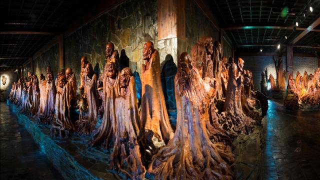钱伟刚讲述起这段故事:“根宫佛国”中最著名的五百罗汉根雕是“龙眼树根”,全部来自广州。