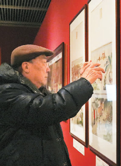 展厅中有一面11米高的巨大书墙,陈列了近400件套与《红楼梦》有关的书籍,颇为壮观。清人绘《大观园图》《怡红夜宴图》、孙温绘《全本红楼梦》等画作,反映了画家心中的红楼故事。国家博物馆藏《大观园图》此次为首度公开展出。全图以蘅芜苑、凸碧山庄、蓼凤轩、凹晶馆、牡丹亭等五处不同形式的建筑为中心,描绘了湘云醉卧、四美垂钓、黛玉夺魁等《红楼梦》中脍炙人口的故事。