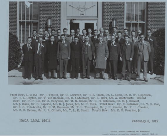 此照片摄于1947年2月,题为《与美国宇航精英同列的中国科学家》。第一排左起第三位是钱学森,第一排右起第四位是冯·卡门,第二排左起第一位是林家翘,第二排左起第三位是郭永怀。