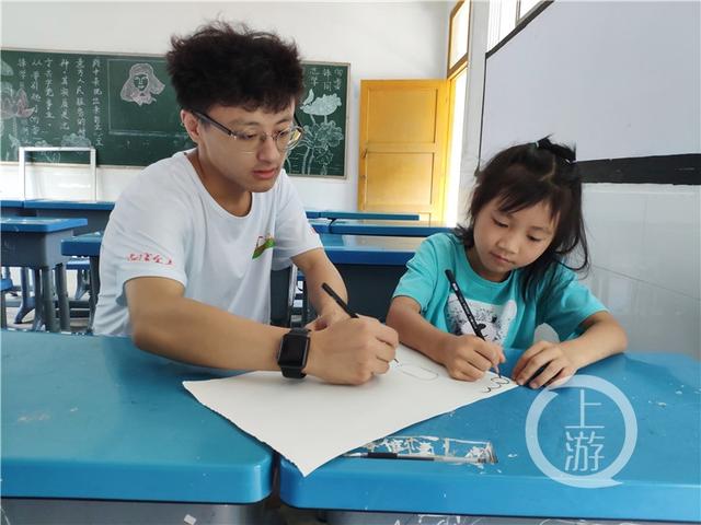 支教期间和孩子一起画画。