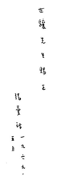 话说就在张爱玲签赠陈世骧《北地胭脂》,委托庄信正转交一个多月之后,1969年7月初,张爱玲进入伯克利加州大学中国研究中心工作,担任高级研究员,研究中国一些特别用语及《红楼梦》等,邀请者正是陈世骧。可想而知,张爱玲签赠陈世骧《北地胭脂》(及其他自著),亦属入职之前的“敲门砖”罢。