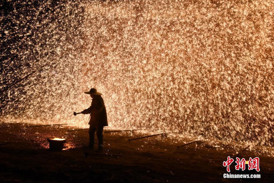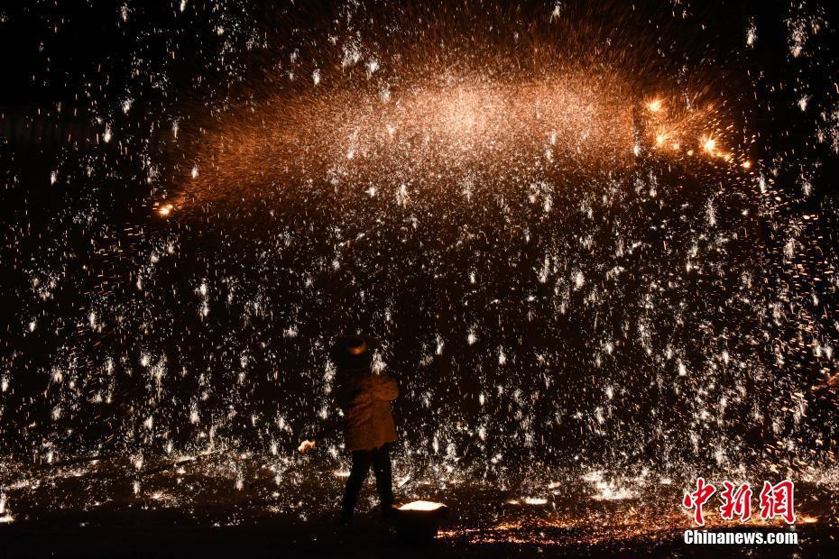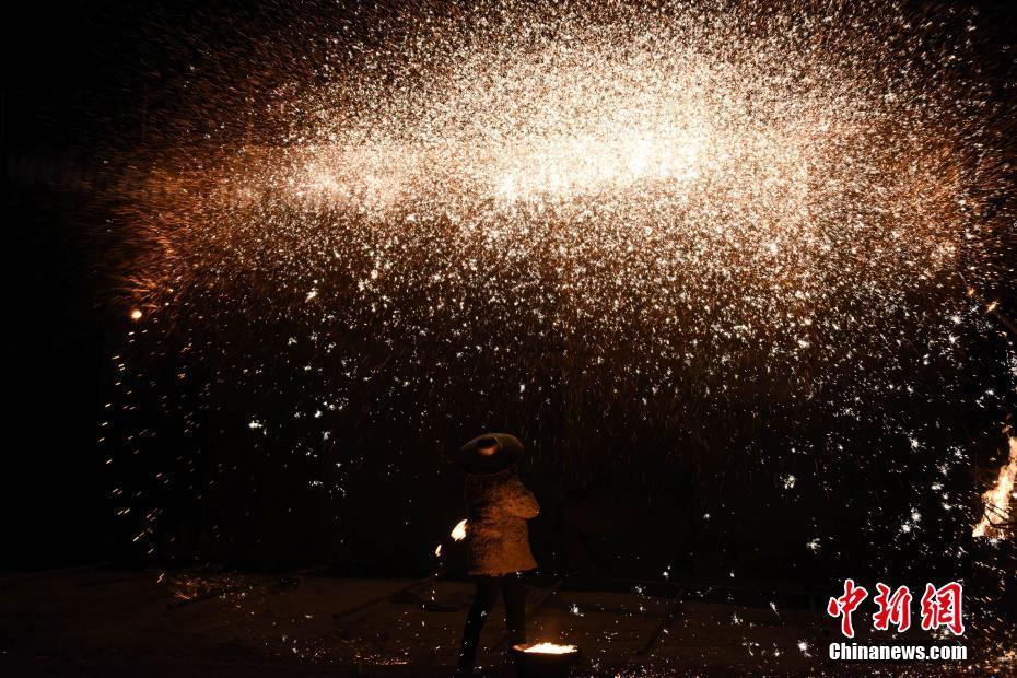 当地打“树花”民俗传承至今已有500余年历史,并已成为一项非物质文化遗产。中新社记者 孙自法 摄