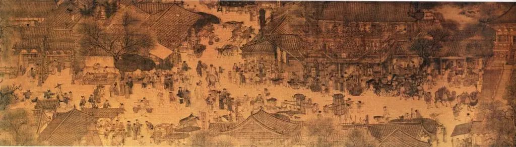 北宋张择端《清明上河图》(局部),两侧店铺林立,足见北宋开封城的繁华。