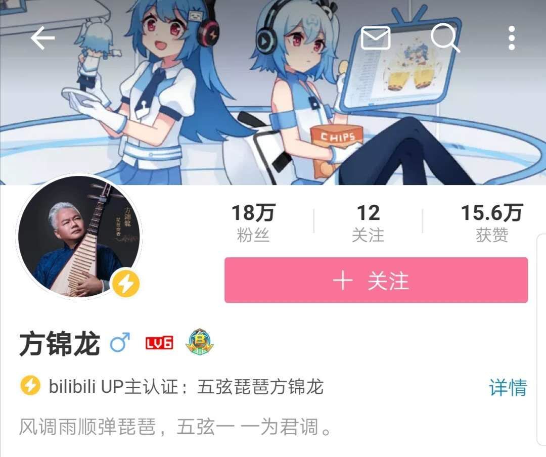 在年轻人聚集的B站上,方锦龙“一把琵琶带你环游世界”的视频点击量超过63万,网友惊呼“壮哉我国乐”。为了和更多年轻人互动,2019年12月16日,方老师正式入驻b站。方老师说:“因为我也还年轻啊!”
