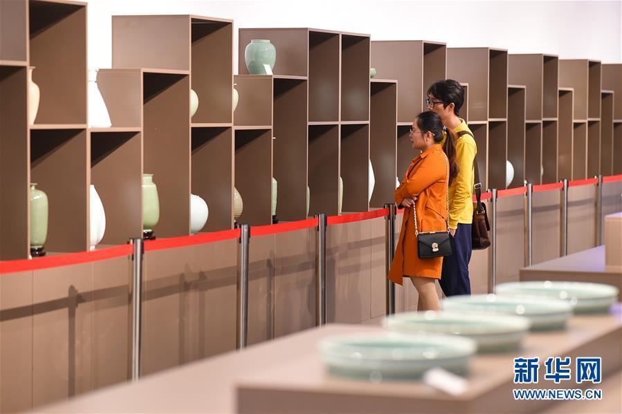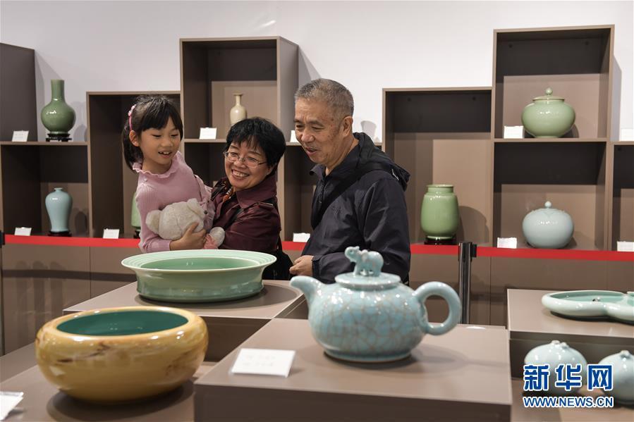 12月28日,市民在海南省博物馆观看当代龙泉青瓷大师作品展。新华社记者 蒲晓旭 摄