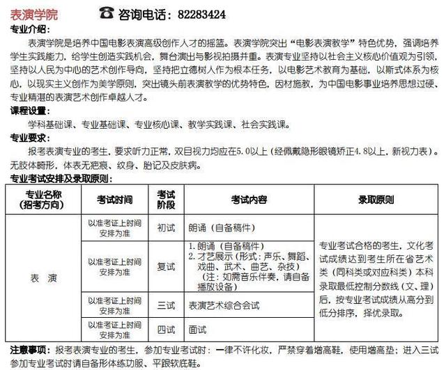 从前述招生简章来看,今年三所高校对表演专业艺考生的要求均有所增加。