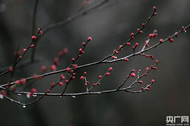 1月4日,杭州植物园内梅花花骨朵含苞待放。(央广网记者 魏炜 摄)
