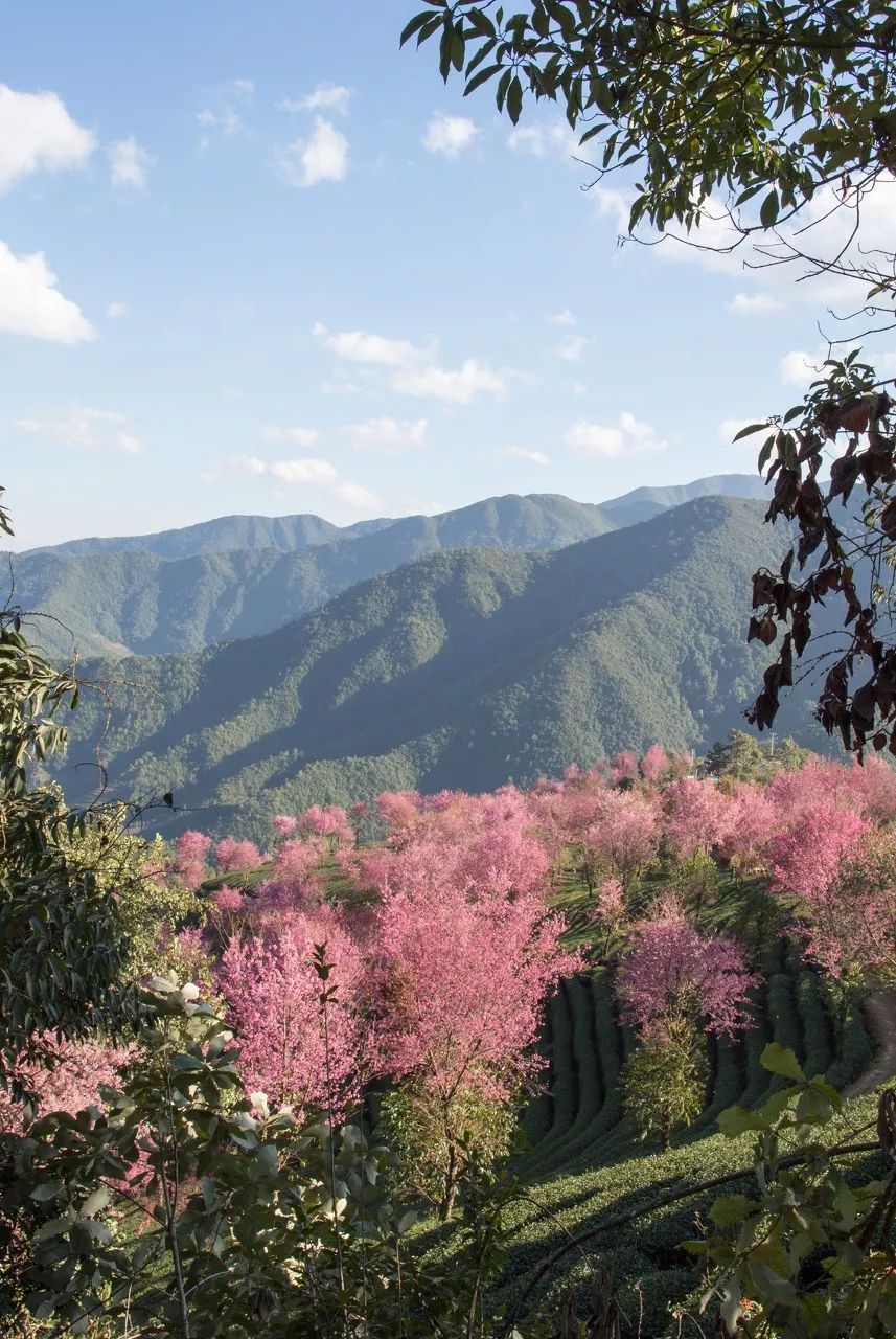 每年11月底或12月中,无量山冬樱花开,美的叫人心醉,翠绿荡漾映着似火的樱花,仿佛燃烧了整个生命。