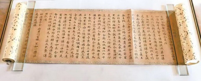 在白鹤美术馆的特展上,能看到一些公元七世纪以后的书法作品,有一件珍贵的唐代《画图赞文》,是日本自古流传的文物。此作品原本是文章和图画并列,现在只剩下了文字部分,内容是讲解唐代的佛教绘卷,对人们了解唐代绘画很有帮助。《画图赞文》的书法功底深厚,接近初唐陆柬之的书风,是优质的唐代书法作品。特展上还有两幅八世纪的写经:《贤愚经》和《大般涅盘经集解》,是汉字传入日本后出现的高水平作品,尤其是《贤愚经》,字体大,书风雄浑厚重,和北魏龙门石窟的《始平公造像记》书法一脉相承,是罕见的上等写经。
