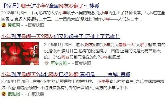 ▲“哪天是小年?”成了又一个南北方网友“吵架”话题。