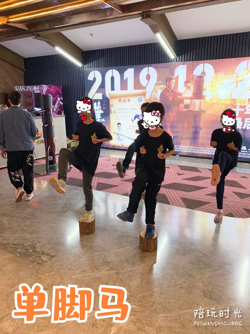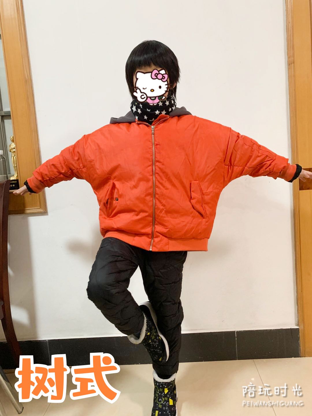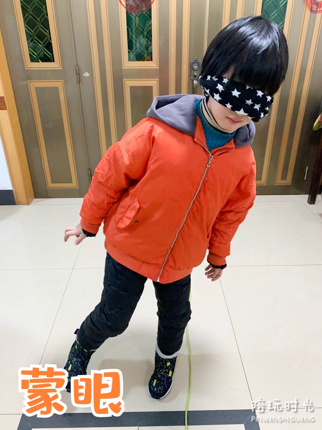 除了站立地点的不同,家长和孩子还可以挑战一下“花式站立”,比如蒙眼单脚站立: