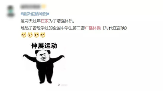 而热爱上运动的还不止他们,众多年轻的小虎子小姐妹,以前在学校做广播操都要老师拨一拨才动一动,现在在家循环播放《时代在召唤》。